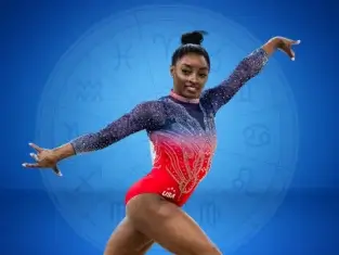 Simone Biles has an Aquarius Rising and Taurus Moon sign. She has an exalted Moon, which is well placed and gives a rise in her profession and grants a stable career.