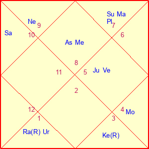 Answer: The influence of Mars with Rahu in the fifth house indicates that you will have some disagreements with the ex-boyfriend. However, a new potential lover is also expected to come into your life. But your mind will hover with your ex. Because you feel more connected to him, and he also feels the same. But it is not so easy to get commitment of marriage from him as Jupiter, though indicates potential for marriage, but its combustion makes it weak in delivering the event of commitment.